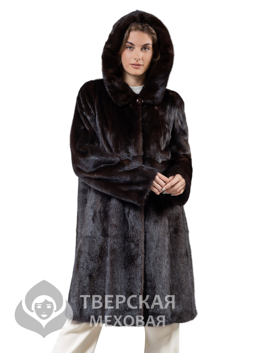 Норковая шуба «Белла» капюшон махагон 100 цвета махагон